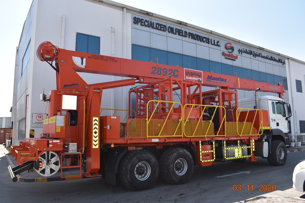 - Crane truck unit enables to lift the whole lubricator assembly and BOPs on the well head, this unit supports the containerized wireline truck's lifting requirements'