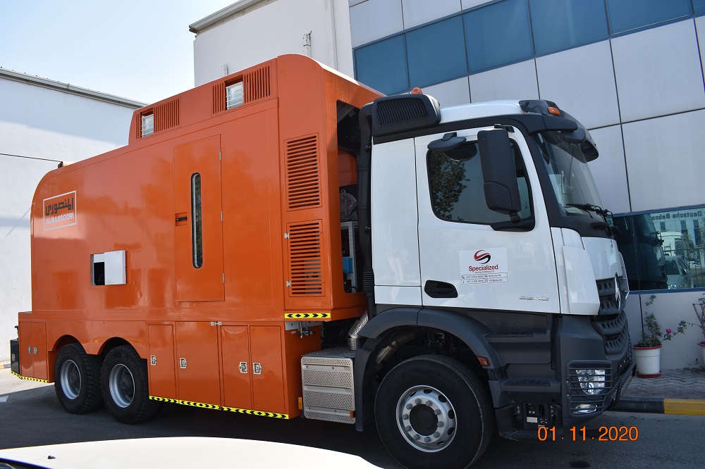 - Easy access downhole tool rack underneath payload floor above chassis rails, minimum storage of about 40 m of 3 3/8 (86mm) OD tools